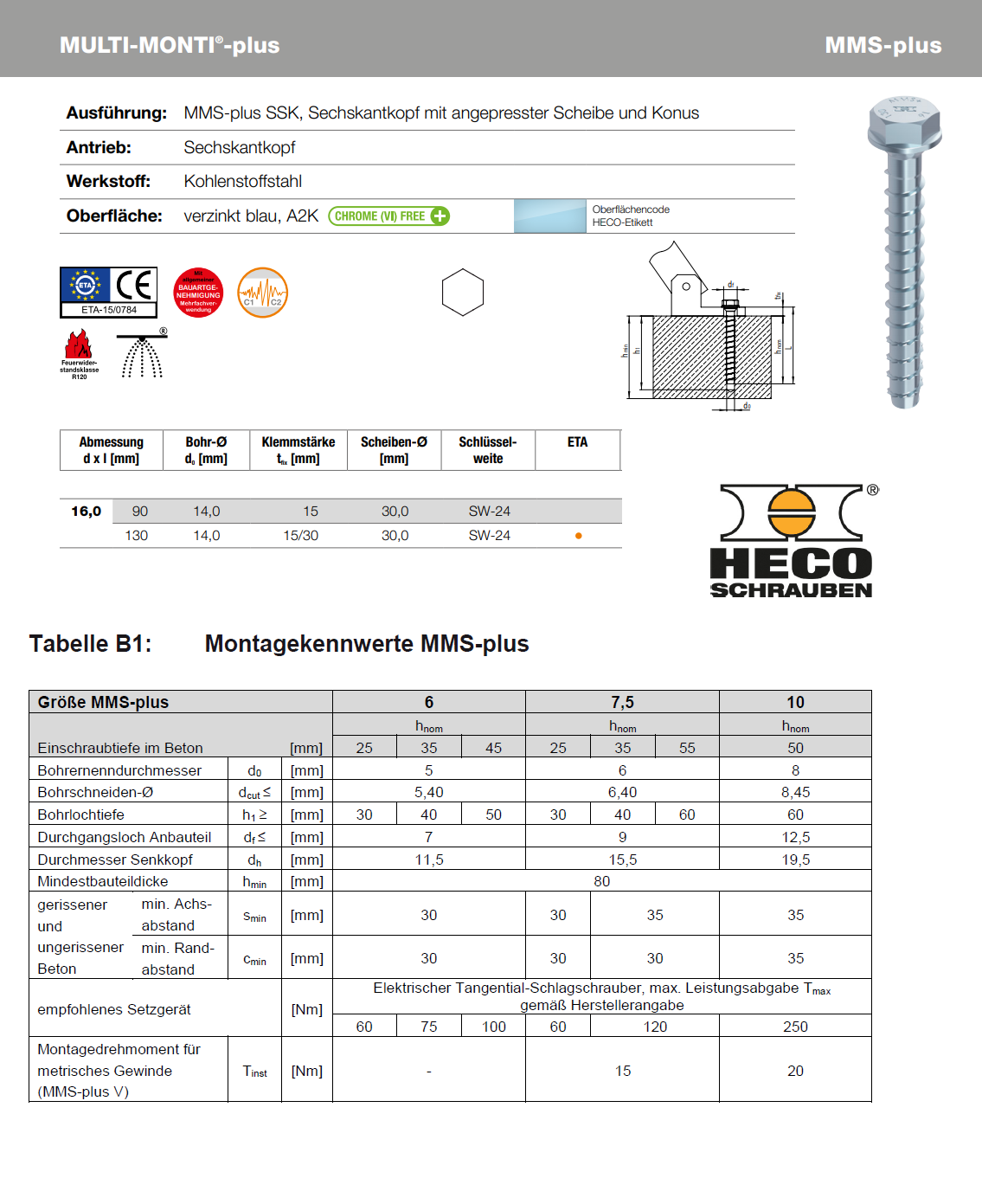 Multi-Monti Sechskant mit angepr. Scheibe u. Konus, MMS-plus-SSK Stahl verzinkt 16x130 K:15/30