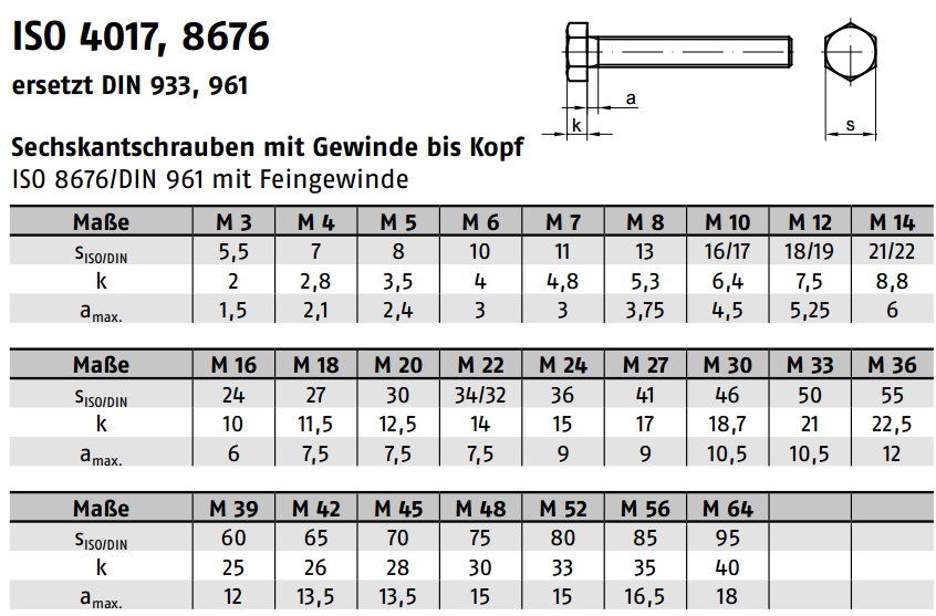 Sechskantschrauben ohne Schaft, DIN933 ISO4017 A4-70 rostfrei M36x150/150