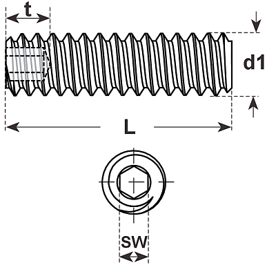 Gewindestifte mit In6kt. und Kegelkuppe, DIN913 ISO4026 A2 rostfrei M12x12/12