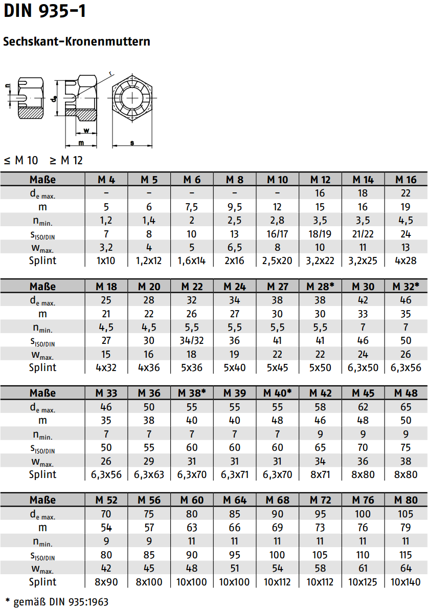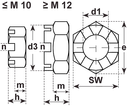 Kronenmuttern mit Feingewinde, DIN935 6-8 blank MF27x1,5