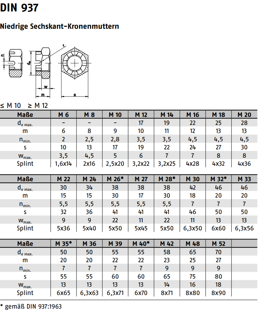 Kronenmuttern mit Feingewinde niedrige Form, DIN937 6-8 verzinkt MF24x1,5