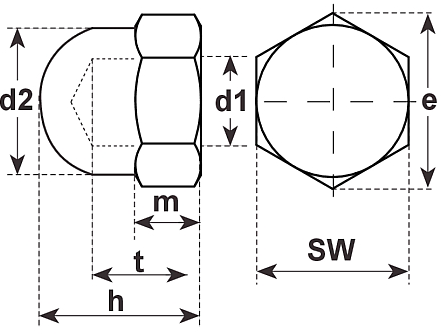 Hutmuttern hohe Form, DIN1587 6 blank M4