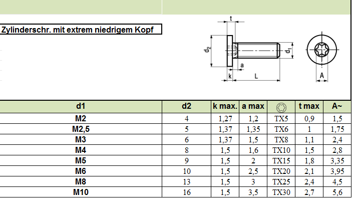Zylinderschr. mit extrem flachem Kopf TX, 8.8 verzinkt M5x16