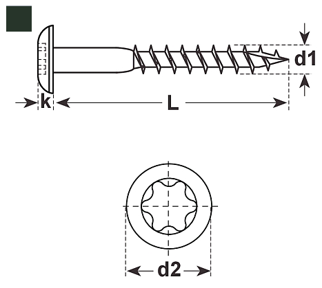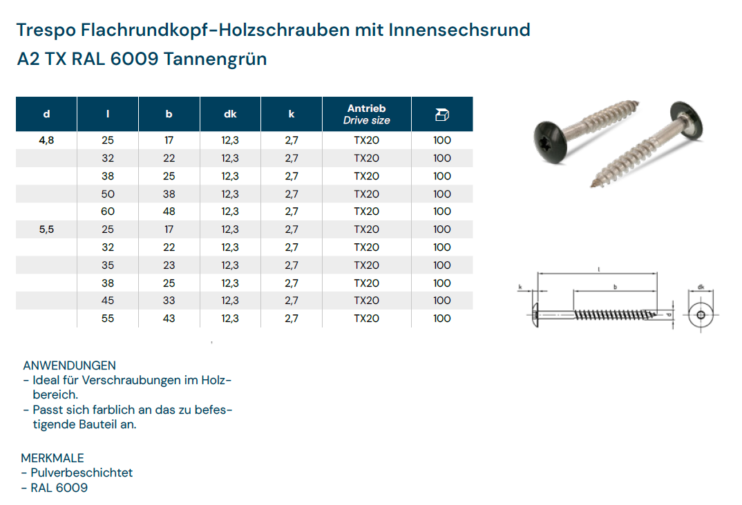 Fassadenschraube mit TX 20, Trespo A2/RAL6009 Tannengrün 4,8x50/38