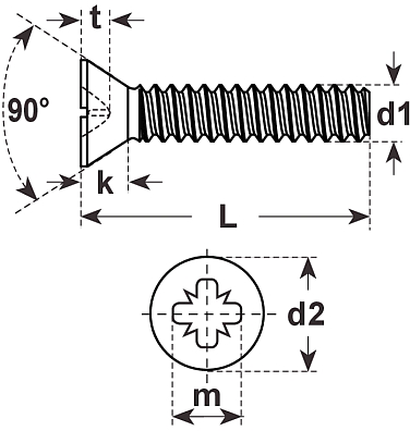 Senkschrauben 90° mit Kreuz Z, DIN965A-Z~ISO7046 A4 rostfrei M2,5x4/4