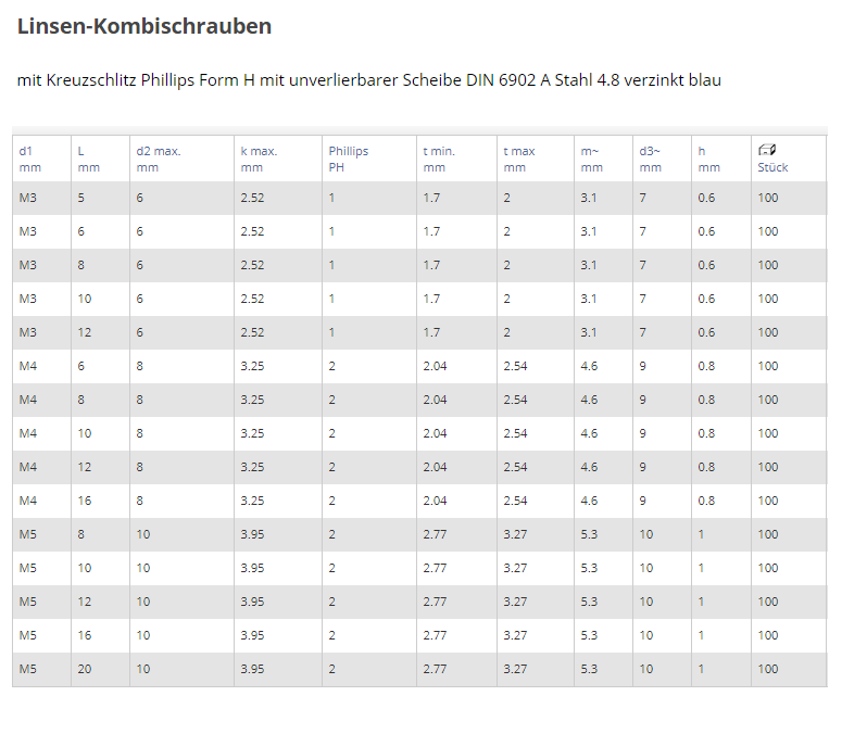 Linsen-Kombischrauben mit Kreuzschlitz H, + unverlierbarer Scheibe 4.8 Stahl verzinkt M5x16