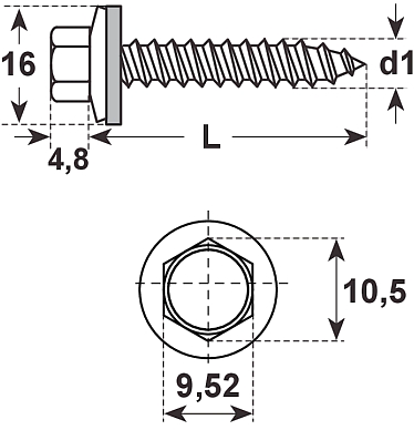 Fassadenschrauben mit Dichtscheibe 16mm, FA-DI-16-SP Stahl verzinkt 6,5x25