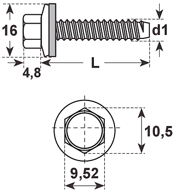 Fassadenschrauben mit Dichtscheibe 16mm, FA-DI-16-ST A2 rostfrei 6,3x300