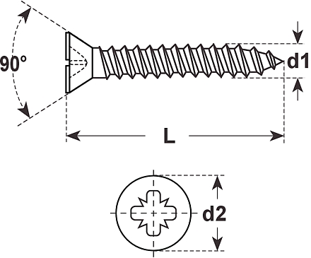 Senk-Spanplattenschrauben Kreuz Z ohne Schaft, SE-SP-Z-OS Stahl verzinkt 6x50/50