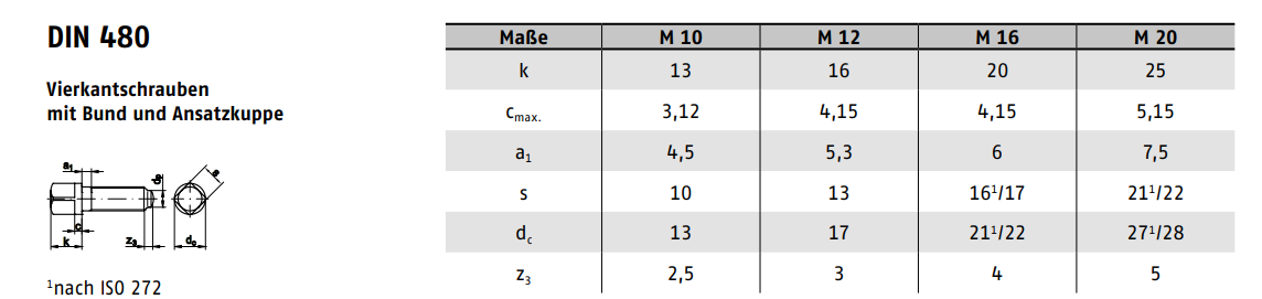 Vierkantschraube mit Bund und Ansatzkuppe, DIN480 10.9 blank M16x60