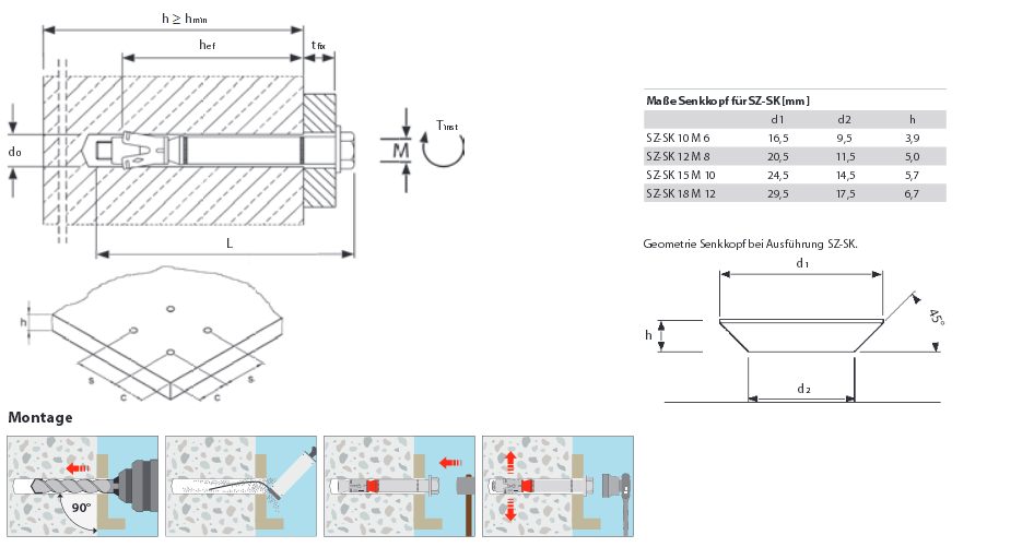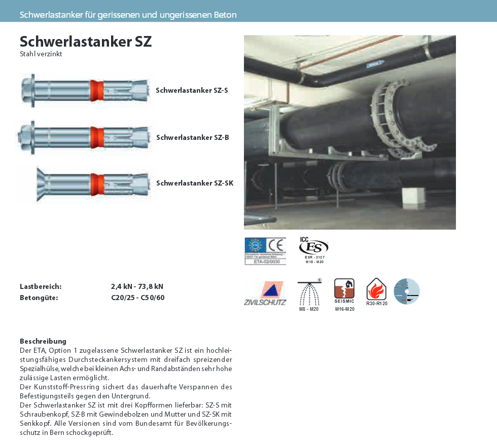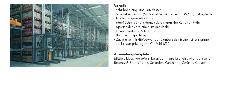 Schwerlastanker SZ-S f. Zug & Druckzonen, SZ-S 24-50 Stahl verzinkt M16x180 K:50