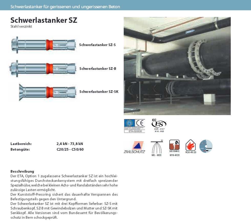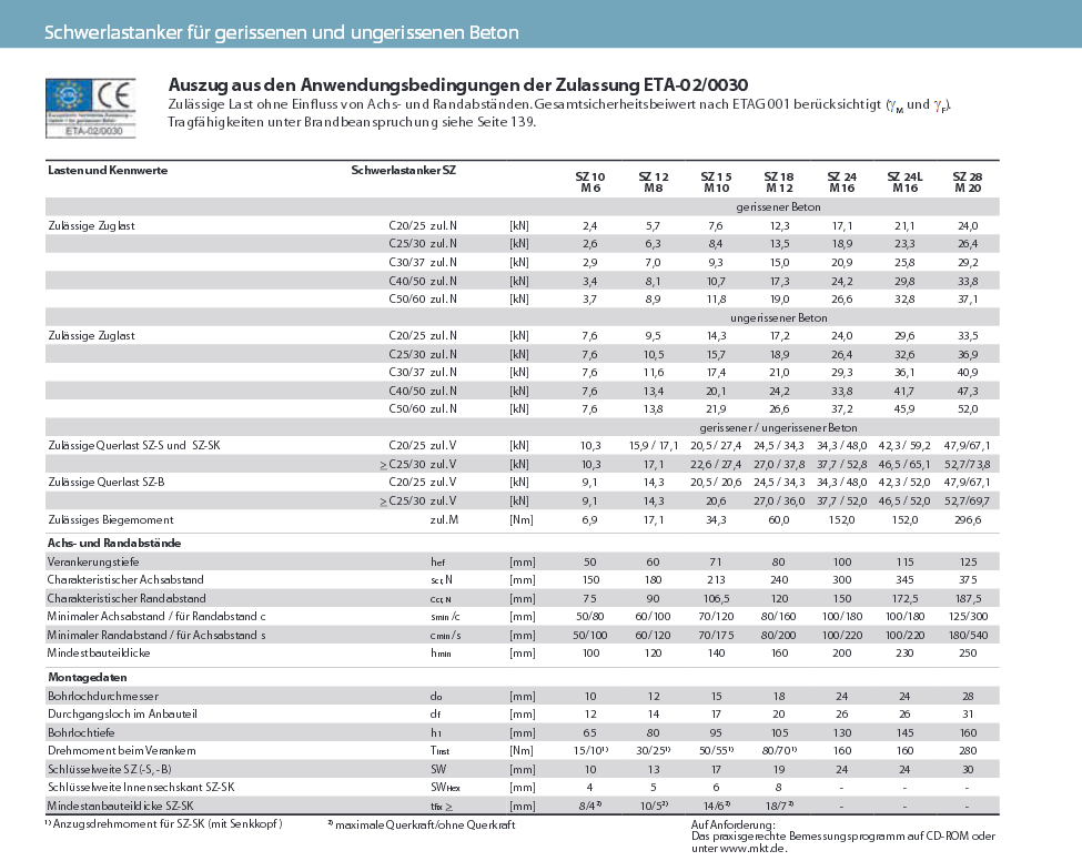 Schwerlastanker SZ-B f. Zug & Druckzonen, SZ-B 10-10 Stahl verzinkt M6x77 K:10