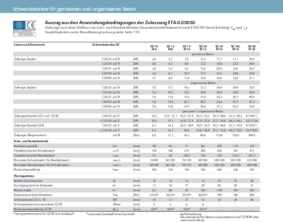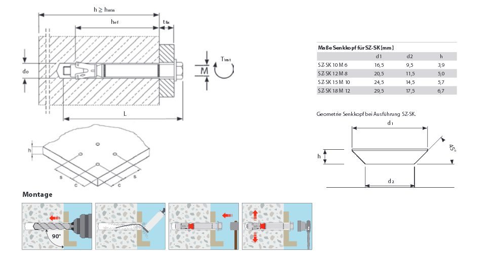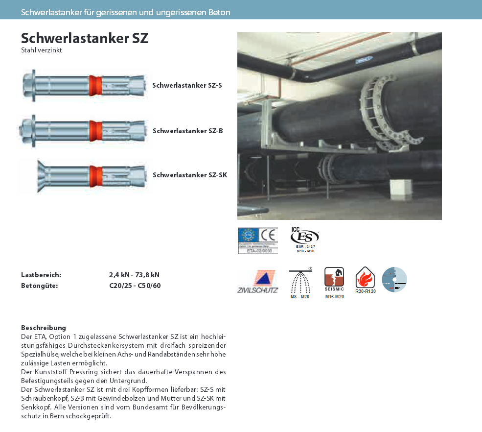 Schwerlastanker SZ-SK f. Zug & Druckzonen, SZ-SK 10-10 Stahl verzinkt M6x70 K:10