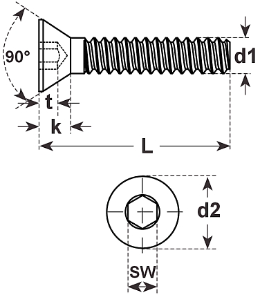 Senkschrauben mit In6kt. ohne Schaft, DIN7991-OS ISO10642 A4 rostfrei M8x45/45