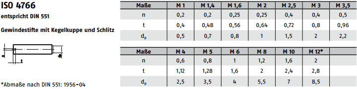 Gewindestifte mit SZ und Kegelkuppe, DIN551 ISO4766 14H-22H verzinkt M16x50