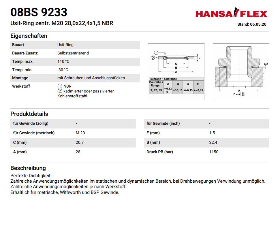 Schraubensicherungen selbstzentrierend, NBR/Stahl vz. M20/20,7x28,0x1,5