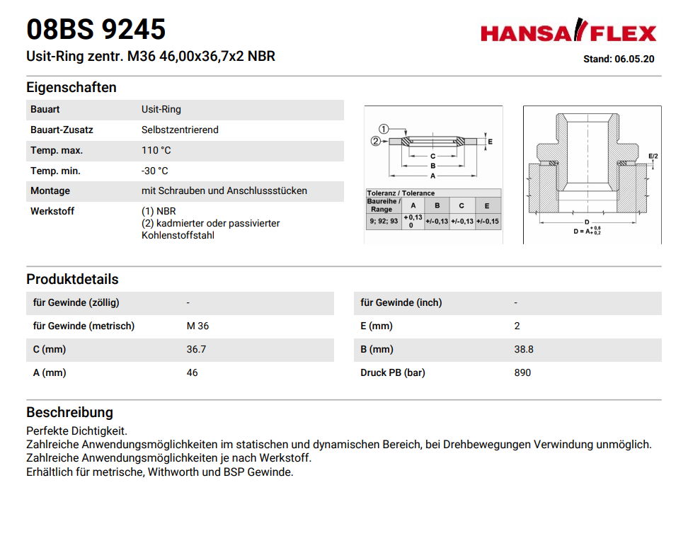 Schraubensicherungen selbstzentrierend, NBR/Stahl vz. M36/36,7x46,0x2,0
