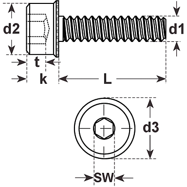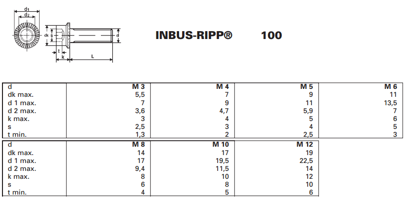 Sicherungsschrauben Inbus Ripp Innensechskant MS, 12300B KL100 blank M8x40/40