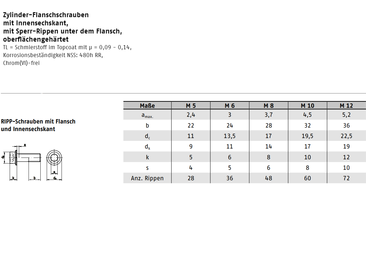 Sicherungsschrauben Inbus Ripp Innensechskant, 12300Z KL100 zinklamellenb. M8x25
