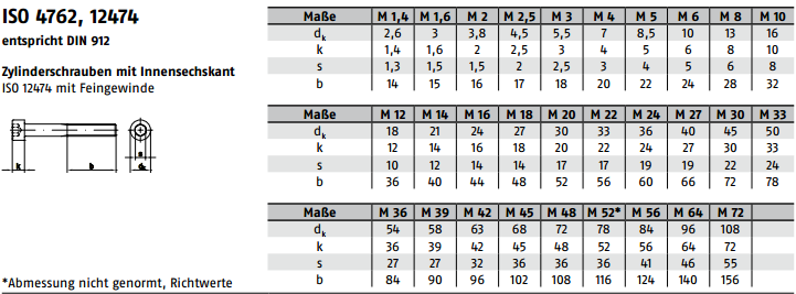 Zylinderschrauben mit In6kt., ISO12474 12.9 blank MF24x2x50