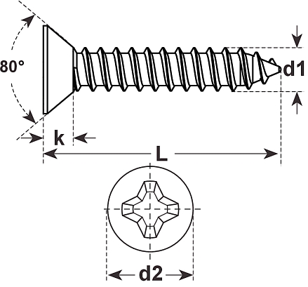 Senkblechschrauben mit Kreuz H, DIN7982C-H~ISO7050 Stahl verzinkt 4,8x32