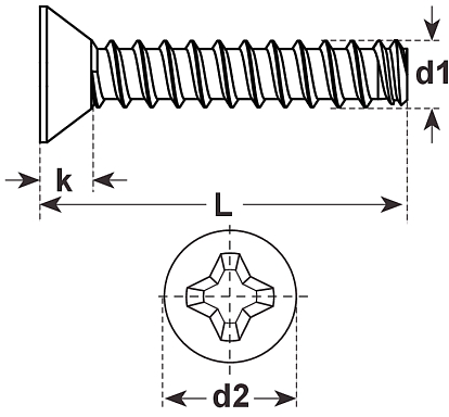 PT-Schrauben Senkopf Kreuz H, WN 1413 A2 rostfrei K40x10