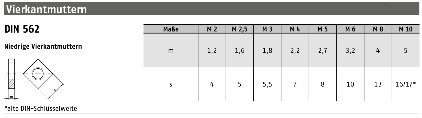 Vierkantmuttern niedrige Form, DIN562 A2 rostfrei M3