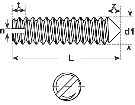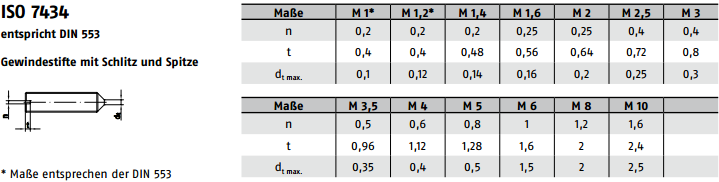 Gewindestifte mit SZ und Spitze, DIN553 ISO7434 14H-22H verzinkt M10x20/20