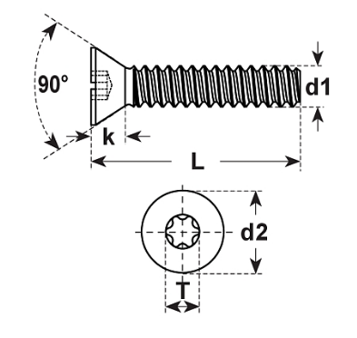 Senkopfschraube-Beschlagschraube kleiner Kopf TX, ähnlich DIN 965 Torx 20 rostfrei A2 M5x12