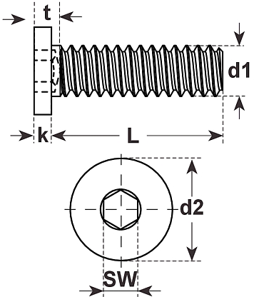 Zylinderschr. mit extrem flachem Kopf In6kt., 10.9 verzinkt M8x20
