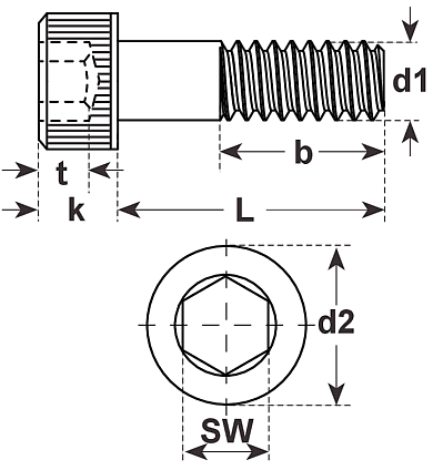 Zylinderschrauben mit In6kt. mit Schaft, ~DIN912-OS ISO4762 12.9 blank UNF1-2x2 1-2