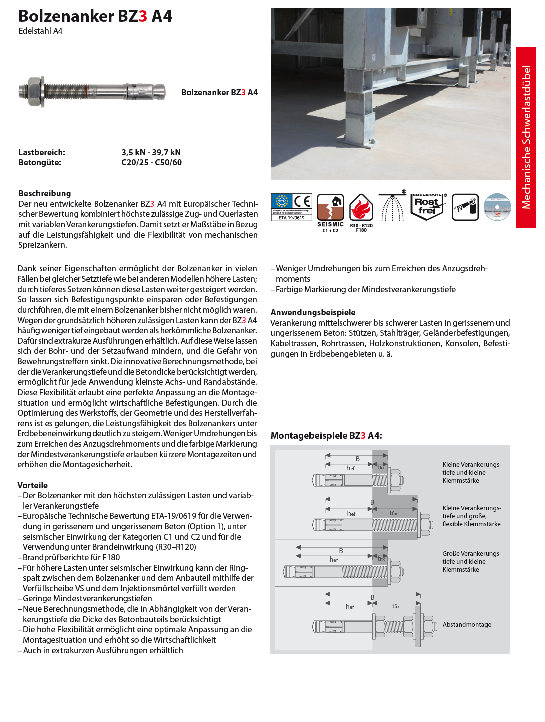 MKT Bolzenanker BZ3, BZ3 A4 rostfrei M10x180 K:60-120
