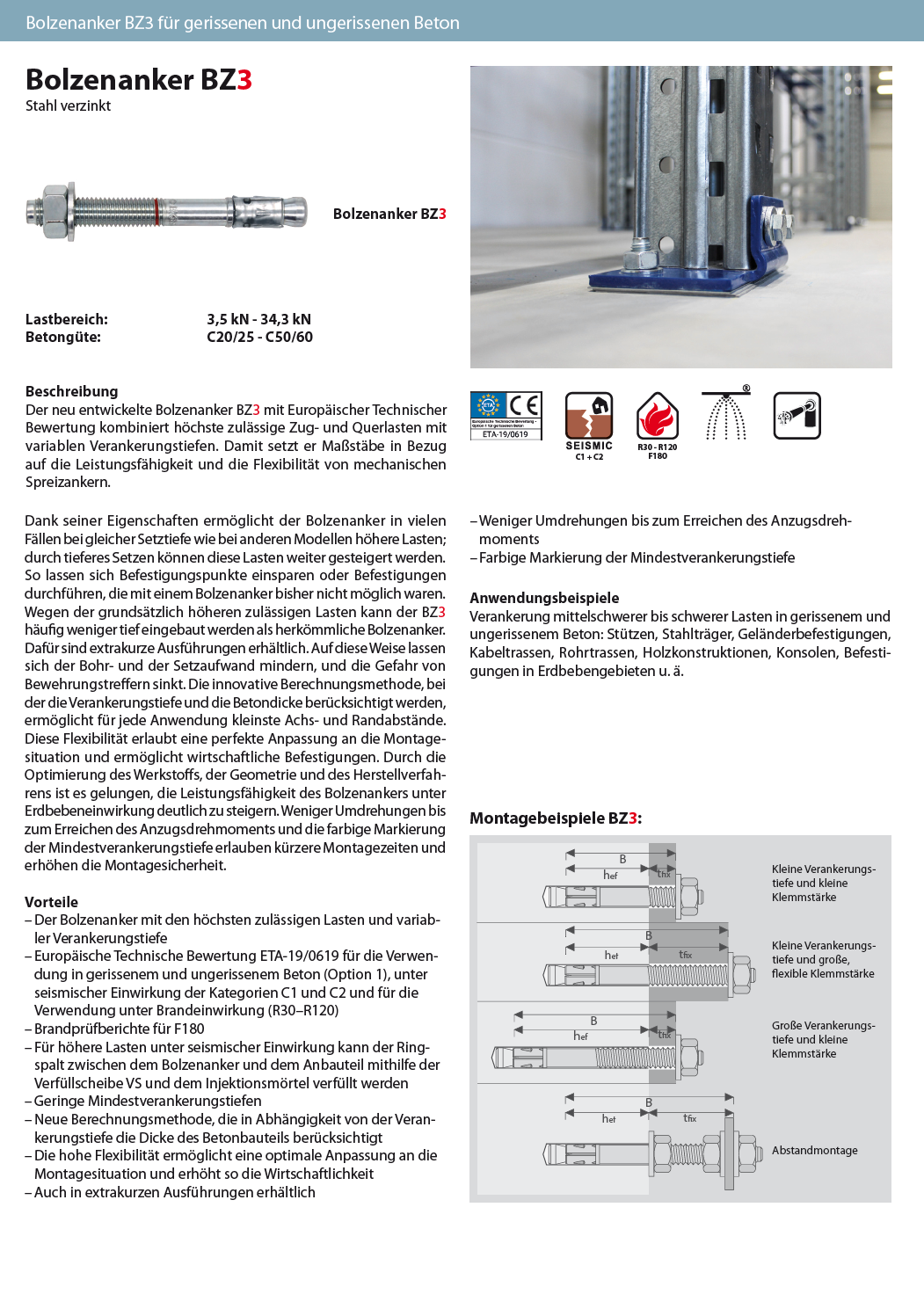 MKT Bolzenanker BZ3, BZ3 Stahl verzinkt M12x160 K:10-85