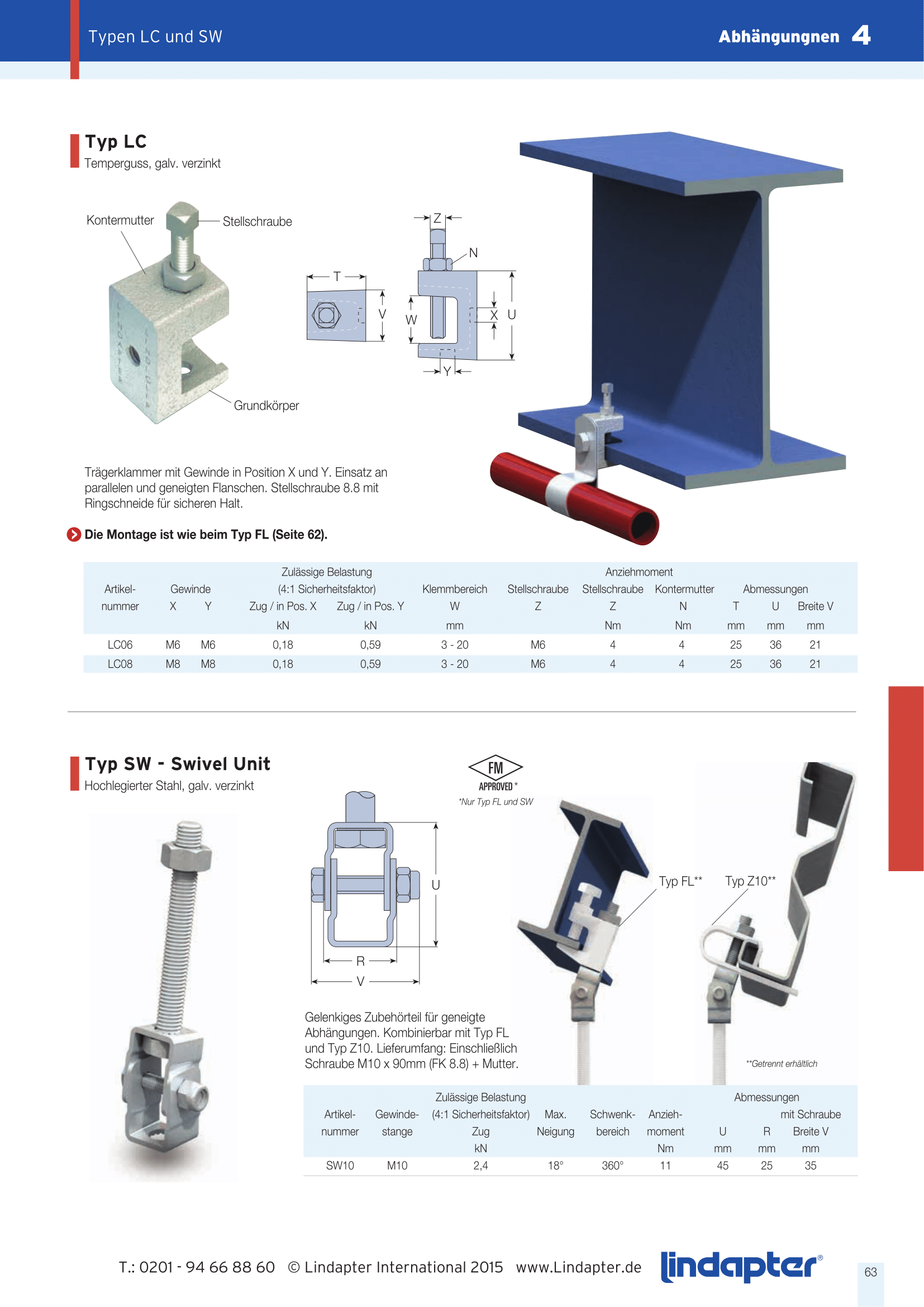 Lindapter Klemmelemente, Typ LC Temperguss verzinkt M6