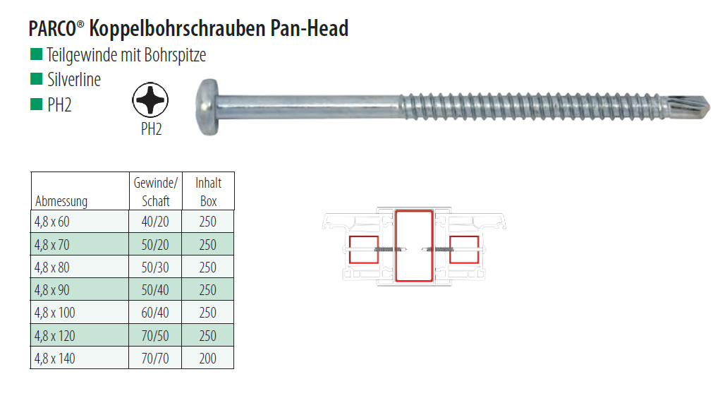 PARCO® Koppelbohrschrauben Pan-Head PH2, Typ Pan-Head Stahl verzinkt 4,8x60/40