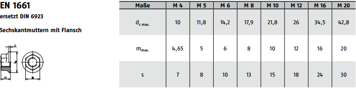 Sechskantmuttern mit Flansch, DIN6923 EN1661 8 verzinkt M5