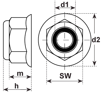 Sicherungsmutter mit Flansch und Poly.einlage, DIN6926 EN1663 8 verzinkt M20