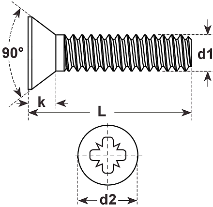 Gewindefurchende Senkschrauben Kopf DIN965, DIN7500M-Z Stahl verzinkt M2,5x8