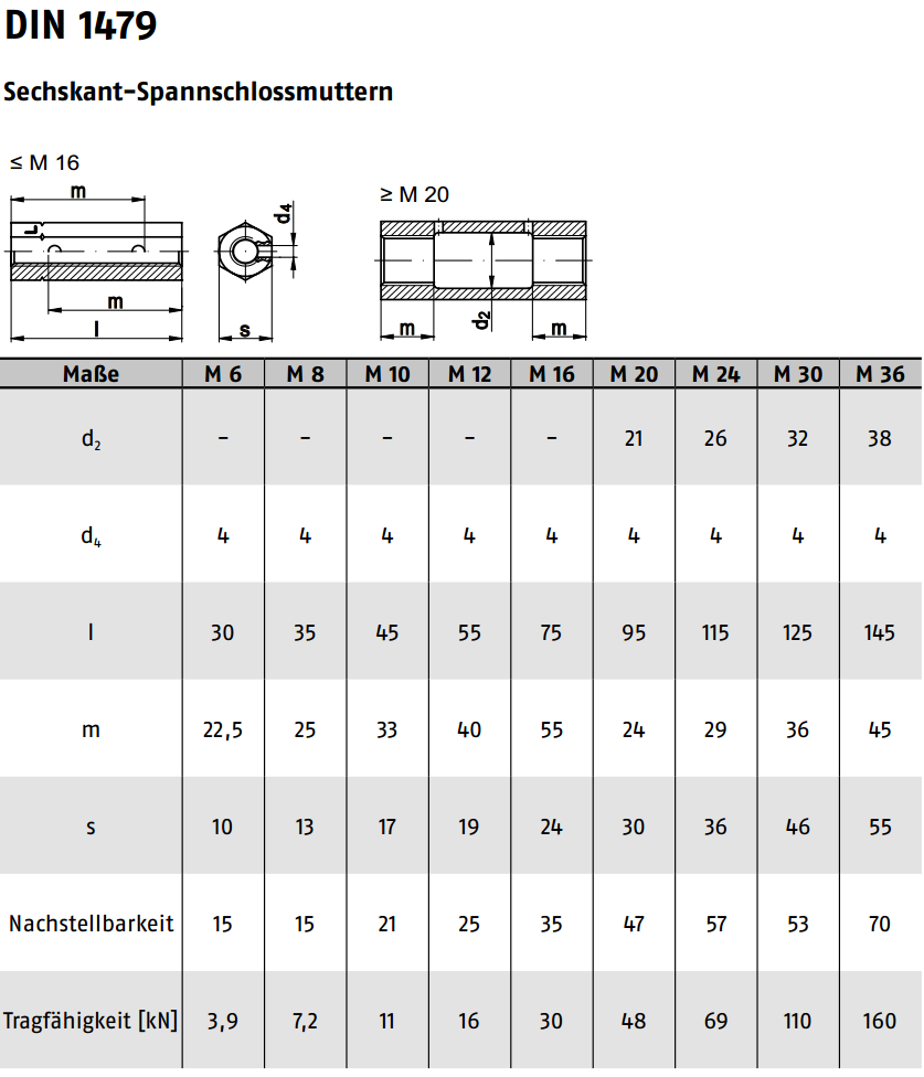 Spannschlossmuttern mit Links- + Rechtsgewinde, DIN1479 Stahl verzinkt M6