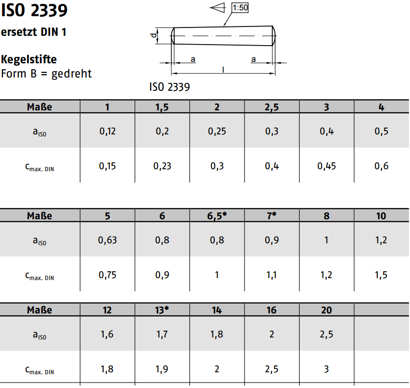 Konische Stifte gedreht Toleranz h10, DIN1 ISO2339B-h10 Stahl blank 10x50