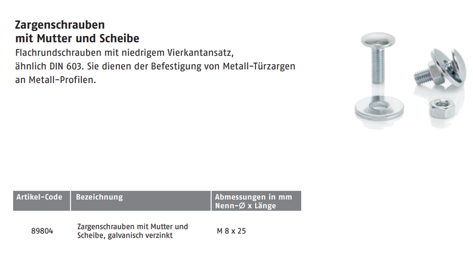 Zargenschrauben mit Mutter und Scheibe, Stahl verzinkt M8x25