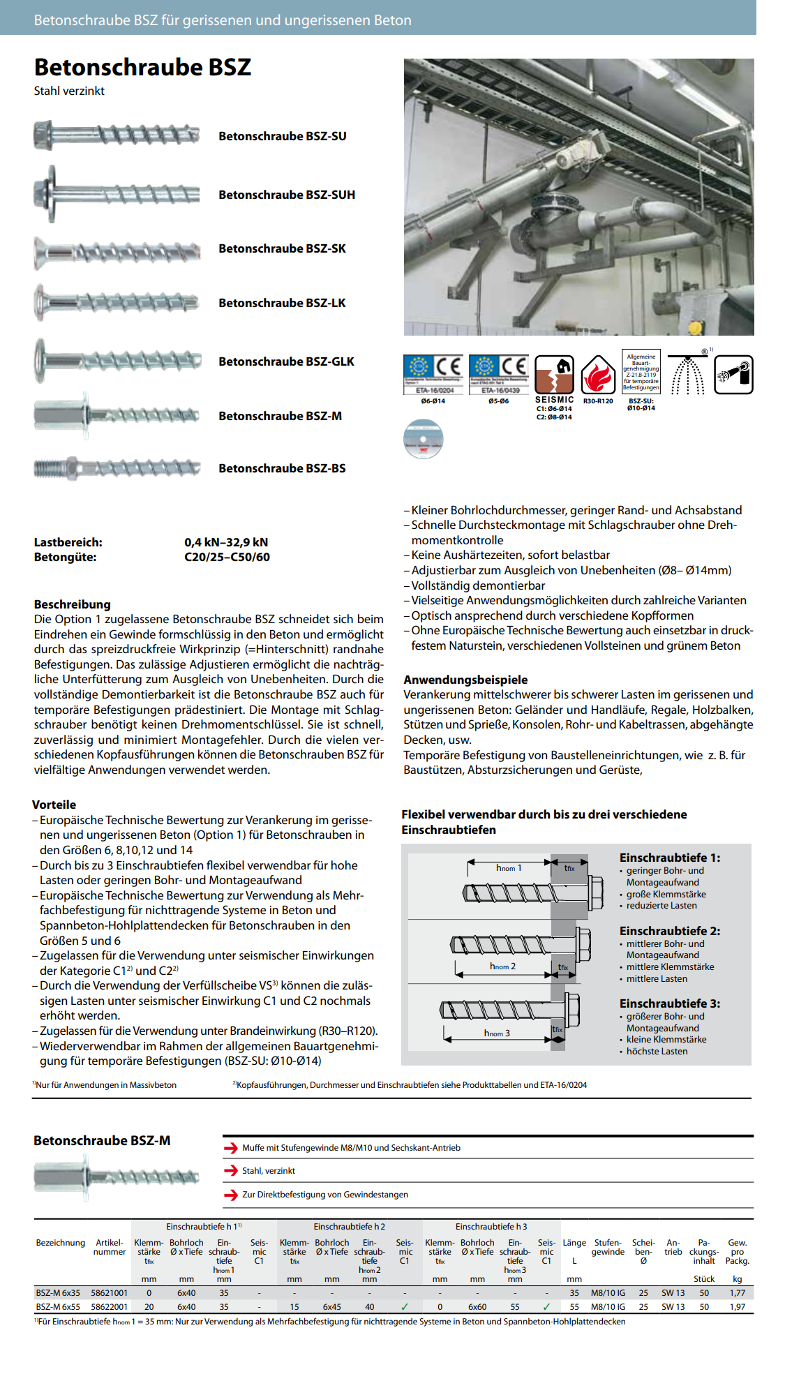 Betonschrauben 6kt.Antrieb mit Innengewinde, BSZ-M verzinkt-blau 6x55/M8-M10 K:15/20
