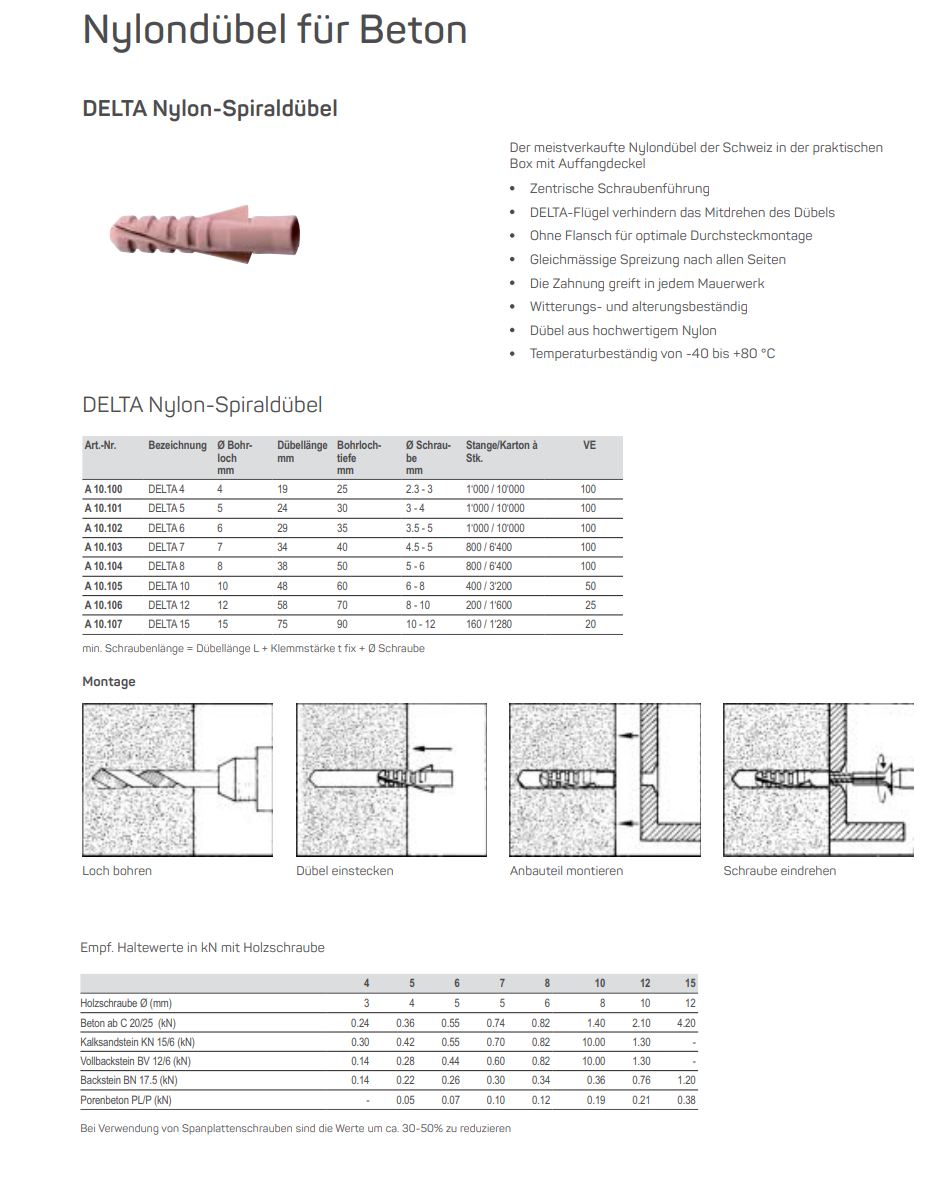 DELTA Nylon-Spiraldübel, Nylon Gr.6x29