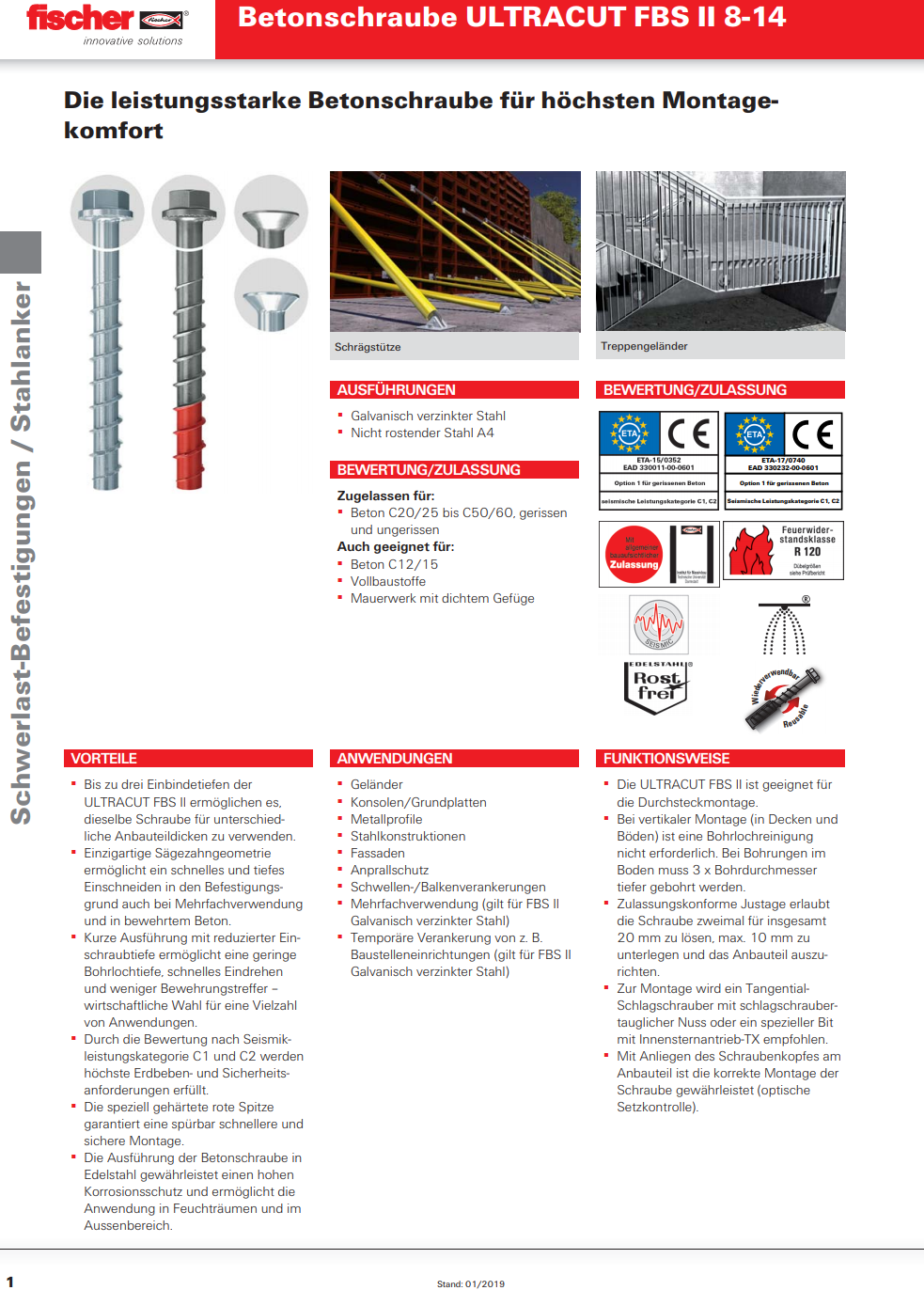 FISCHER Betonschrauben ULTRACUT 6kt./TX, FBS II Stahl verzinkt 8x80 K:30/15 US