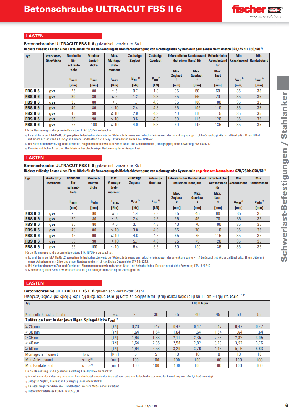 FISCHER Betonschrauben ULTRACUT 6-kt., FBS II 6 US Stahl verzinkt 6x100 K:45 US