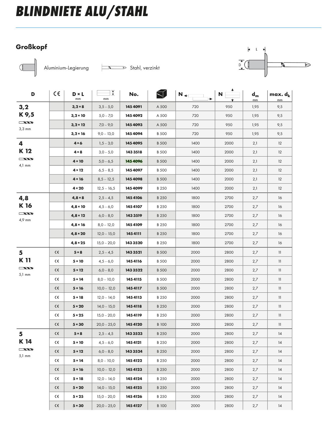 Blindnieten Grosskopf GESIPA, Aluminium-Stahl verzinkt 4x6 K:1,5-3