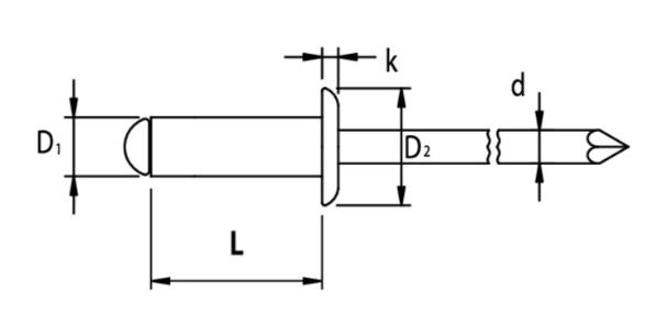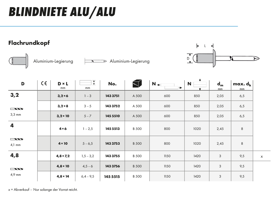 Blindnieten Flachrundkopf GESIPA, Aluminium-Aluminium 3,2x8 K:3-5