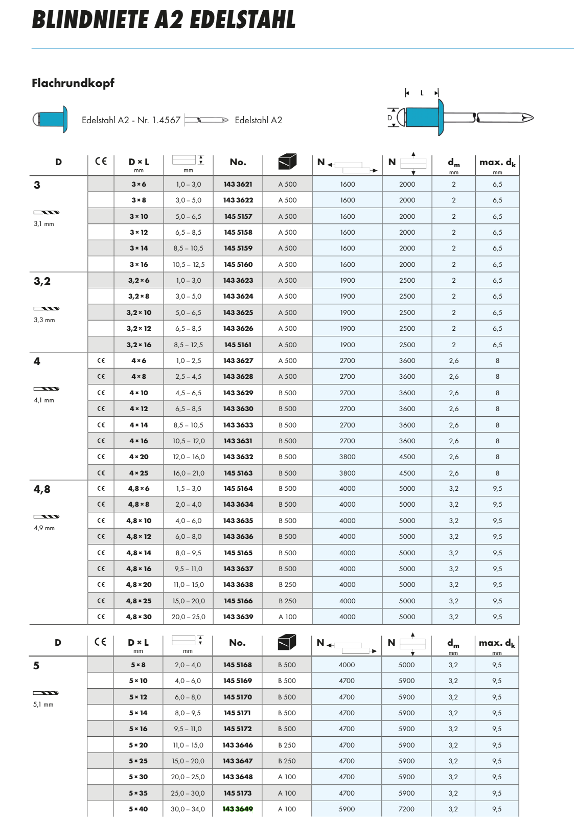 Blindnieten Flachrundkopf GESIPA, A2-A2 5x20 K:-20-15