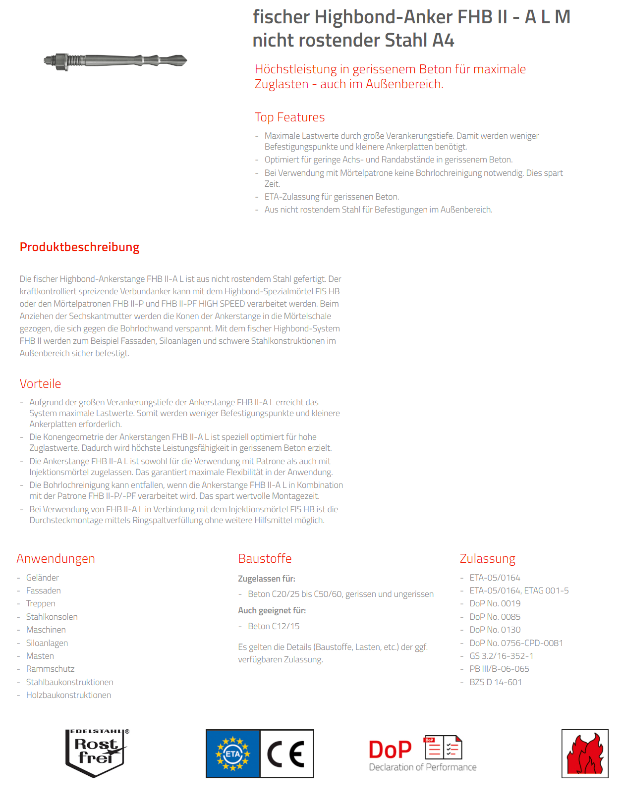 FISCHER Highbond-Anker Langversion, FHB II-A L A4 rostfrei M12x192 K:40