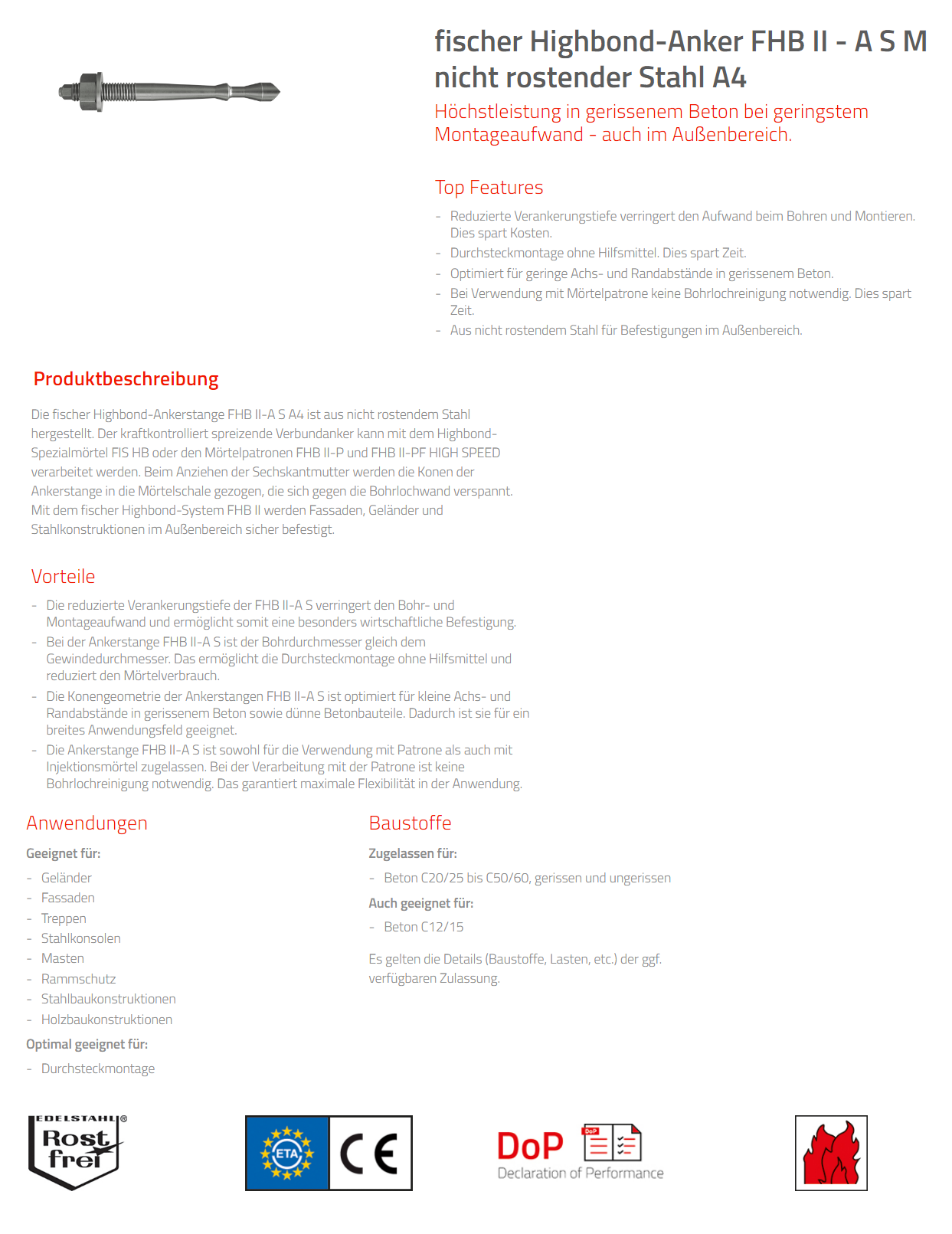 FISCHER Highbond-Anker Kurzversion, FHB II-A S A4 rostfrei M10x106 K:20